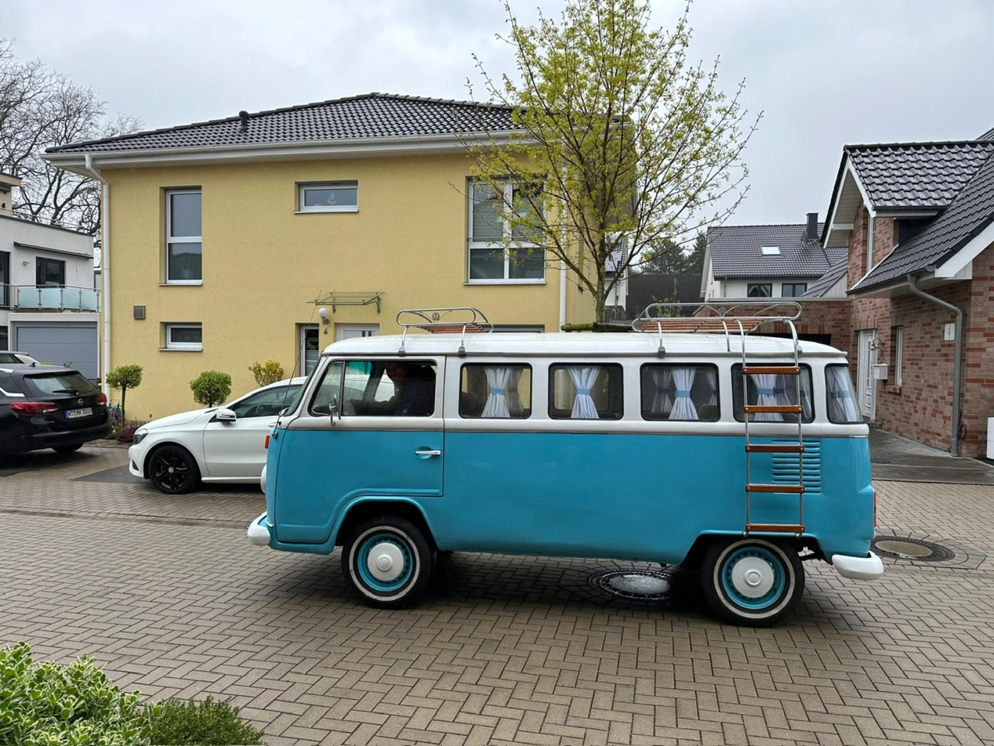Wir hatten die Wahl zwischen einem roten und einem "schlüpferblauen" Bulli. Aufgrund der Verfügbarkeit entschieden wir uns für Letzteren. Das Fahren dieses alten Autos stellte sich als eine ganz andere Herausforderung heraus. Die Lenkung war deutlich schwerer, 50 PS machten das Fahren nicht gerade einfacher, und die Schaltung war merklich hakeliger. Dennoch zogen wir viel Sympathie auf uns. An der Ampel erhielten wir oft ein "Daumen hoch" von den nebenstehenden Autos. Manchmal wurden wir sogar angehupt, um die Begeisterung zum Ausdruck zu bringen.